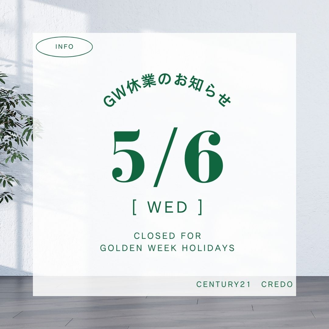 「ゴールデンウィーク期間中の営業について」【2026-04-17更新】お知らせ | 川越市・坂戸市・鶴ヶ島市の不動産(新築一戸建て・中古戸建・土地・中古マンション)不動産売却はセンチュリー21クレド