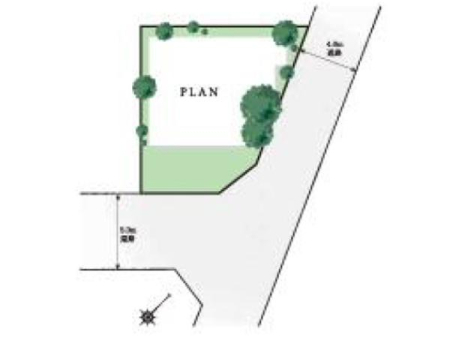 | 接道状況 | 接道: 東 公道 道路幅: 4m 接道: 南 公道 道路幅: 5m |