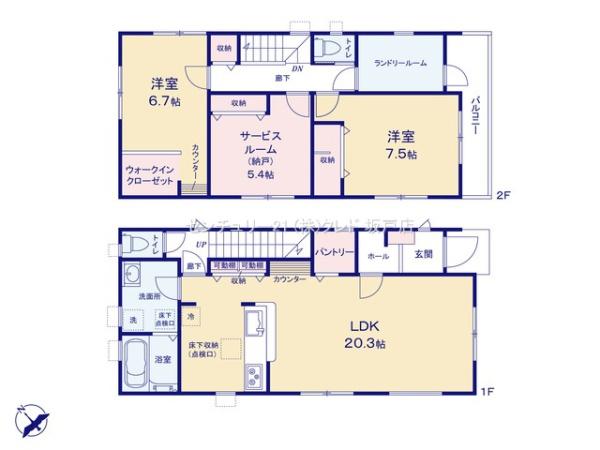 | 築年月 | 2025年10月築 | 間取り | 2SLDK (LDK20.3/洋室7.5/洋室6.7/S5.4) | ||