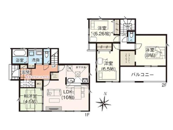 | 築年月 | 2025年12月築 | 間取り | 4LDK (LDK16/和室4.5/洋室5.25/洋室6.5/洋室8) | ||