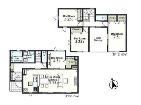 | 築年月 | 2025年10月築 | 間取り | 4LDK (LDK17.75/洋室4.5/洋室7.5/洋室5.25/洋室5.25) | ||