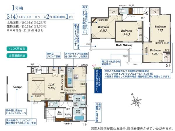 土地面積 | 100.16m² (30.3坪) | 建物面積 | 110.13u |