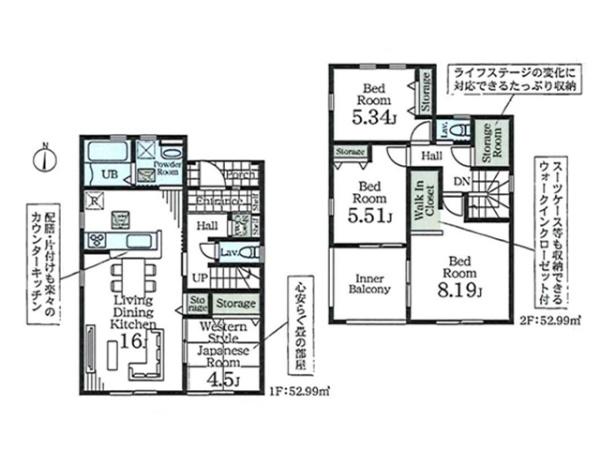 | 築年月 | 2025年11月築 | 間取り | 4SLDK (LDK16/和室4.5/洋室5.51/洋室5.34/洋室8.19) | ||