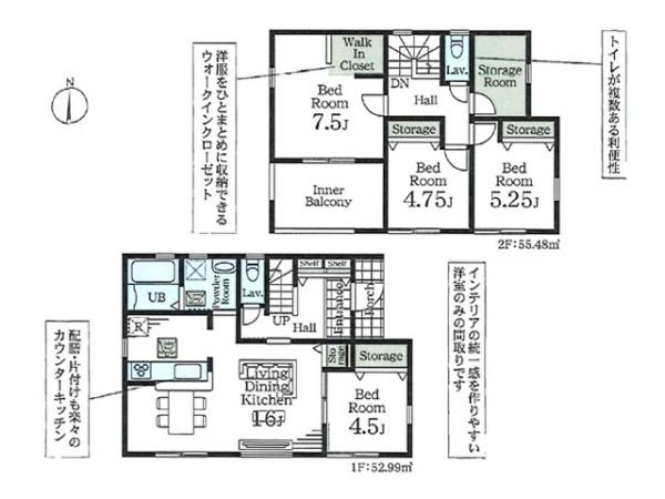 築年月 2025年11月築 間取り 4SLDK (LDK16/洋室4.5/洋室5.25/洋室4.75/洋室7.5)