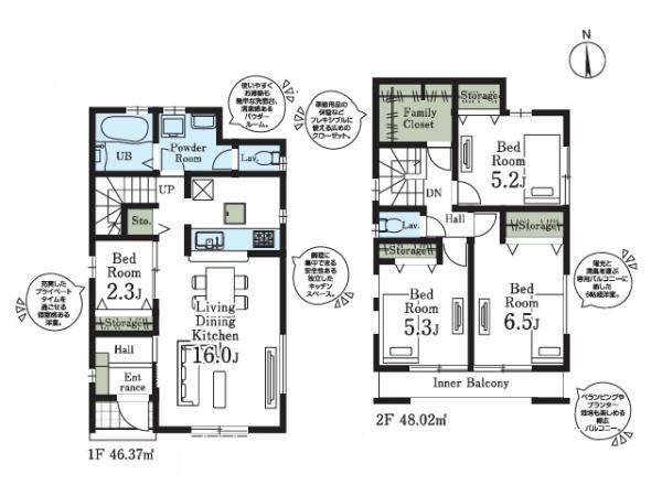 | 築年月 | 2025年12月築 | 間取り | 4LDK (LDK16/洋室2.3/洋室5.3/洋室5.2/洋室6.5) | ||