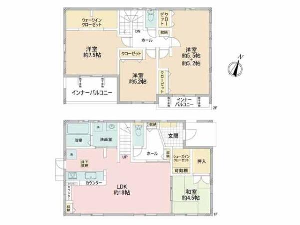| 築年月 | 2018年8月築 | 間取り | 4LDK (LDK18/和室4.5/洋室7.5/洋室5.2/洋室10.7) | ||