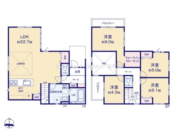 | 築年月 | 2025年6月築 | 間取り | 4LDK (LDK22.7/洋室9/洋室5/洋室4.3/洋室5.1) | ||