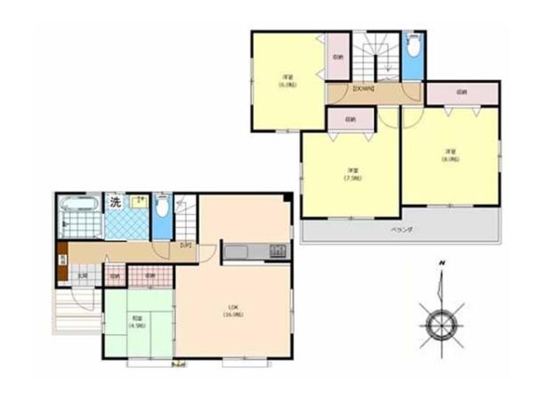 | 築年月 | 2020年10月築 | 間取り | 4LDK (LDK16/和室4.5/洋室6/洋室7.5/洋室8) | ||
