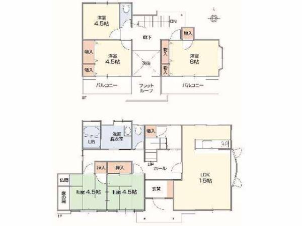 | 築年月 | 1995年3月築 | 間取り | 5LDK (LDK15/和室4.5/和室4.5/洋室6/洋室4.5/洋室4.5) | ||