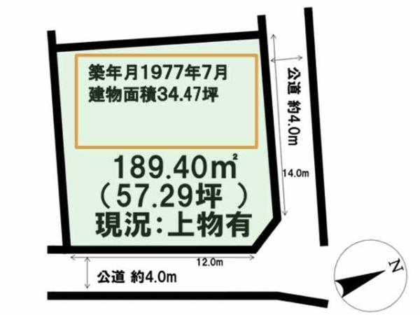 | 接道状況 | 接道: 北 14m 公道 道路幅: 4m 接道: 東 12m 公道 道路幅: 4m |