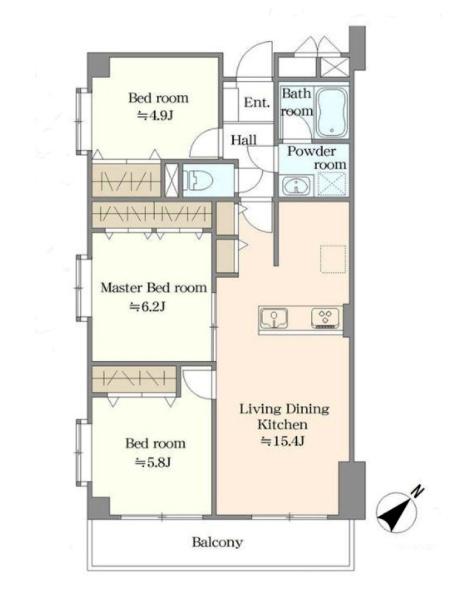| 間取り | 3LDK (LDK15.4/洋室4.9/洋室5.8/洋室6.2) | ||||