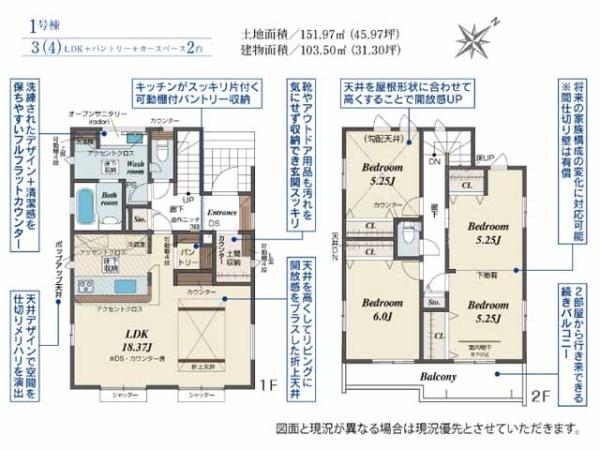 土地面積 | 151.97m² (45.97坪) | 建物面積 | 103.5u |