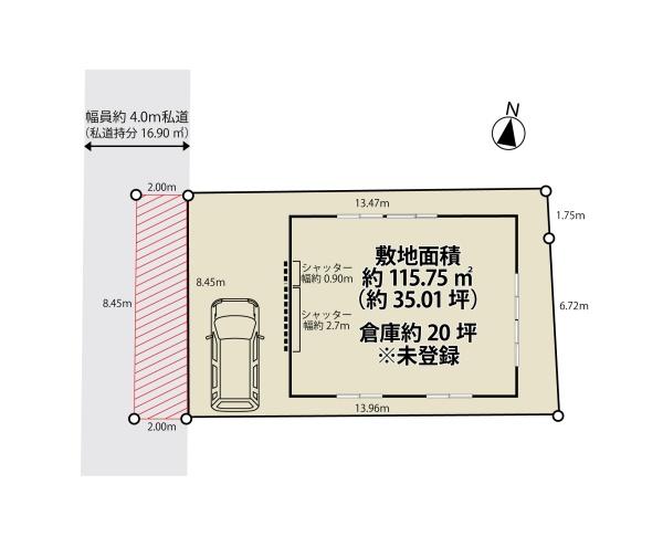 | 現況/引渡し | 上物あり/相談 | 接道状況 | 接道: 西 8.45m 私道 道路幅: 4m |