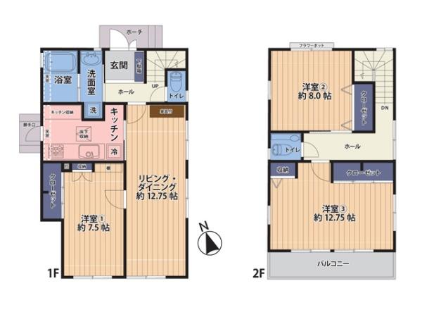 築年月 2001年1月築 間取り 3LDK (LD12.75/洋室7.5/洋室12.75/洋室8)
