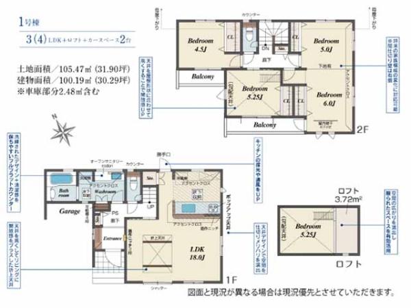 土地面積 | 105.47m² (31.9坪) | 建物面積 | 100.19u |