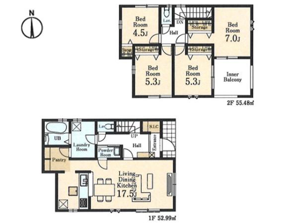 | 築年月 | 2026年5月築 | 間取り | 4LDK (LDK17.5/洋室4.5/洋室5.3/洋室5.3/洋室7) | ||