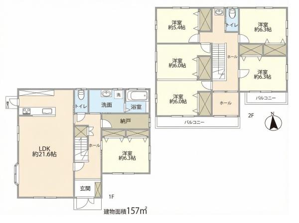 | 築年月 | 2012年6月築 | 間取り | 6SLDK (LDK21.6/洋室6.3/洋室6.3/洋室6.3/洋室6/洋室6/洋室5.4) | ||