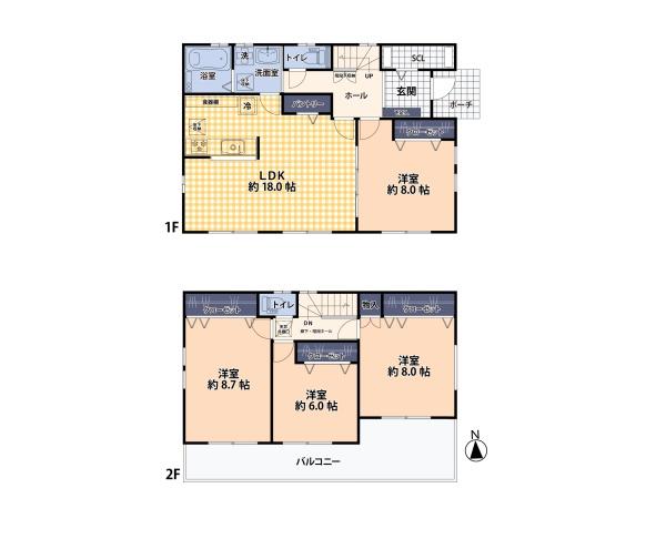 LDKは18帖と広く、2階の居室も全室洋室で使い勝手の良い間取りです。