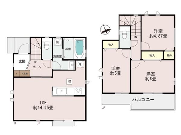 | 築年月 | 2026年6月築 | 間取り | 3LDK (LDK14.25/洋室4.87/洋室6/洋室5) | ||
