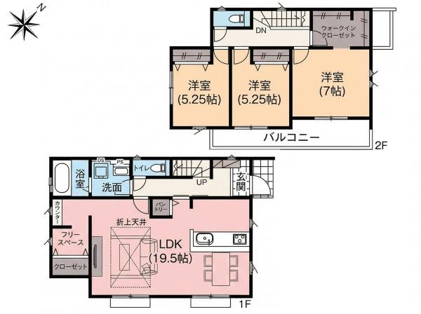 | 築年月 | 2026年7月築 | 間取り | 3LDK (LDK19.5/洋室5.25/洋室5.25/洋室7) | ||