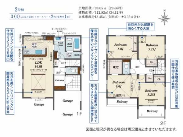 土地面積 | 98.05m² (29.66坪) | 建物面積 | 112.82u |
