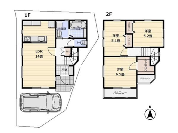 | 築年月 | 2026年3月築 | 間取り | 3LDK (LDK14/洋室5.1/洋室5.2/洋室6.5) | ||