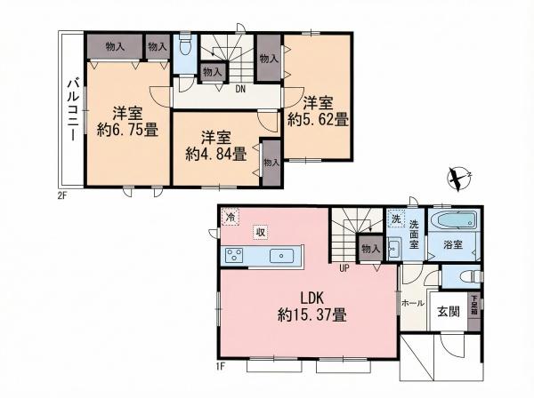 | 築年月 | 2026年5月築 | 間取り | 3LDK (LDK15.37/洋室6.75/洋室4.84/洋室5.62) | ||