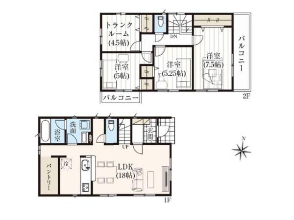 | 築年月 | 2019年3月築 | 間取り | 3SLDK (LDK18/洋室5/洋室5.25/洋室7.5/S4.5) | ||