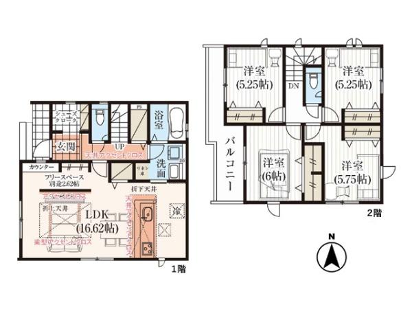 築年月 2026年6月築 間取り 4LDK (LDK16.62/洋室5.25/洋室5.25/洋室5.75/洋室6)