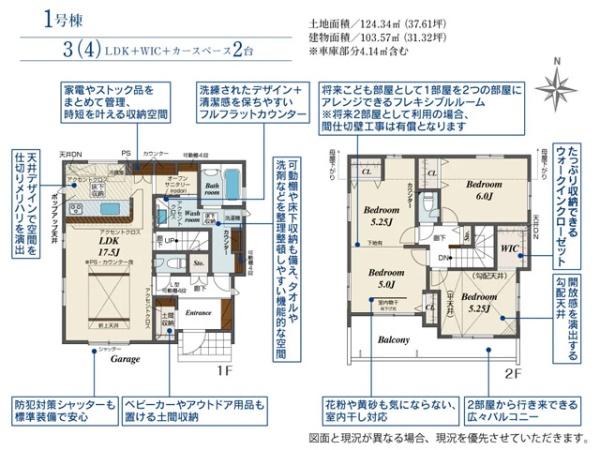 土地面積 | 124.34m² (37.61坪) | 建物面積 | 103.57u |
