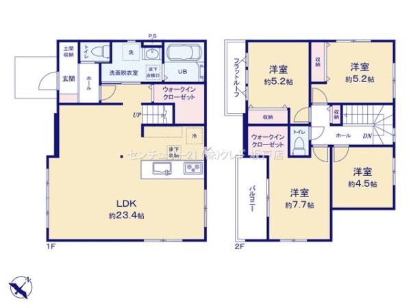 | 築年月 | 2026年5月築 | 間取り | 4LDK (LDK23.4/洋室4.5/洋室5.2/洋室5.2/洋室7.7) | ||