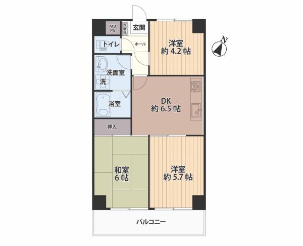 間取り 3DK (DK6.5/和室6/洋室5.7/洋室4.2)