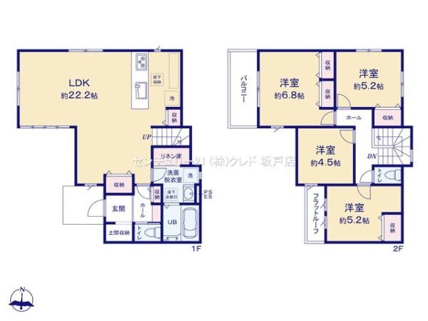 | 築年月 | 2025年8月築 | 間取り | 4LDK (LDK22.2/洋室6.8/洋室5.2/洋室4.5/洋室5.2) | ||