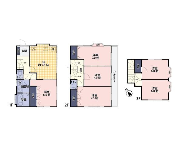 | 築年月 | 1995年5月築 | 間取り | 6DK (DK9.5/洋室6.5/洋室7/洋室6/洋室7.5/洋室6/洋室6) | ||