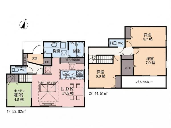 | 築年月 | 2026年7月築 | 間取り | 4LDK (LDK17.5/和室4.5/洋室5.7/洋室6/洋室7) | ||