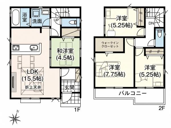 | 築年月 | 2026年7月築 | 間取り | 4LDK (LDK15.5/和室4.5/洋室7.75/洋室5.25/洋室5.25) | ||