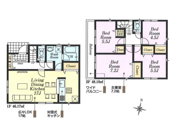| 築年月 | 2026年6月築 | 間取り | 4LDK (LDK17/洋室7.2/洋室5.5/洋室5.5/洋室4.5) | ||