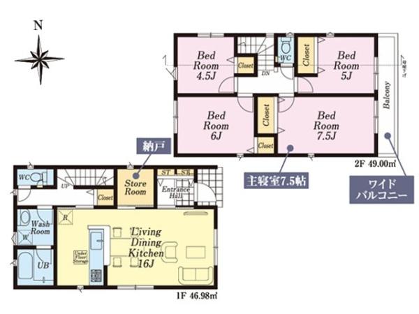 | 築年月 | 2026年7月築 | 間取り | 4SLDK (LDK16/洋室4.5/洋室5/洋室6/洋室7.5) | ||