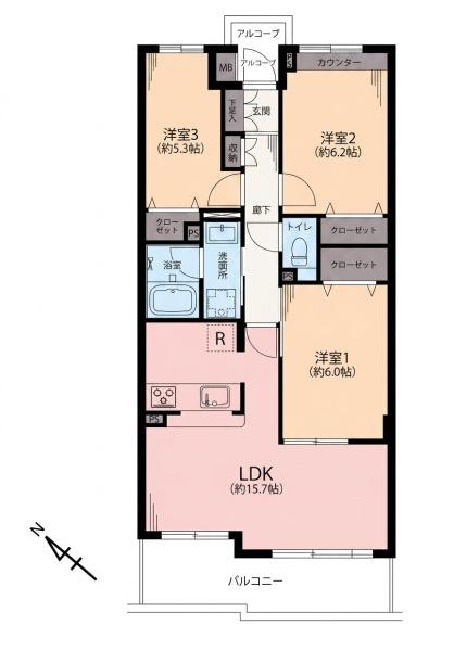 | 間取り | 3LDK (LDK15.7/洋室5.3/洋室6/洋室6.2) | ||||