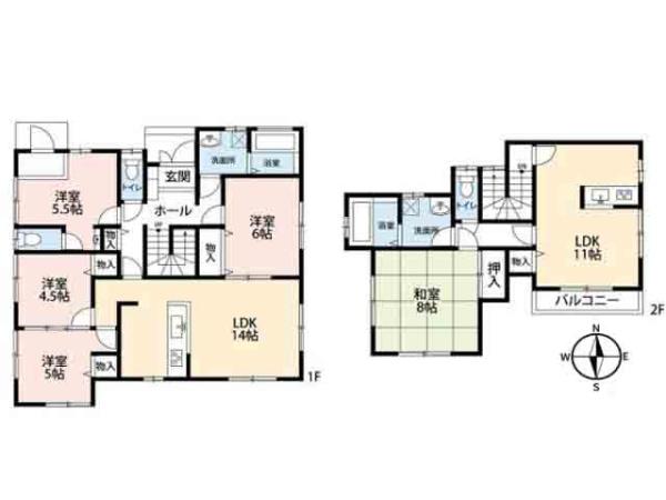 | 築年月 | 2010年10月築 | 間取り | 5LDK (LDK14/洋室5.5/洋室4.5/洋室5/洋室6/和室8/LDK11) | ||