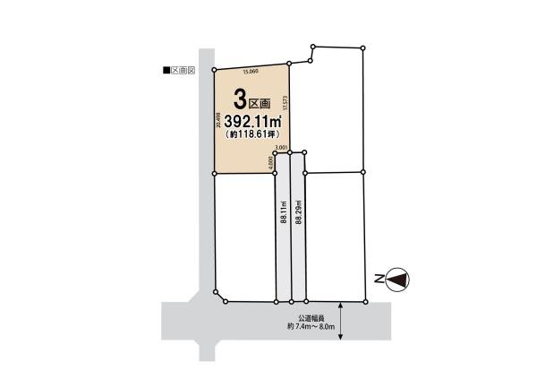 • 全体区画図 全区画90坪超の広々とした敷地!建築条件無し!お好きなハウスメーカー、工務店で建築が可能です。
