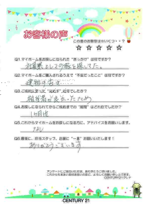 この度は、センチュリー21クレドをご利用頂きまして誠に有り難うございます。