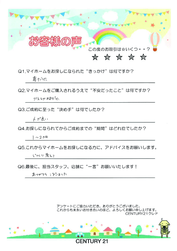 この度は、弊社にてご成約いただき、誠にありがとうございました。