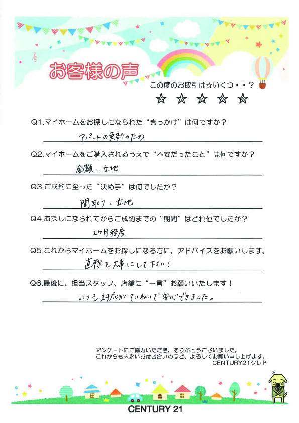 この度は、弊社にてご成約いただき、誠にありがとうございました。