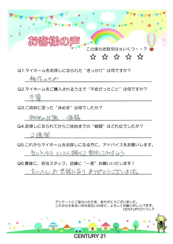 この度は、弊社にてご成約いただき、誠にありがとうございました。