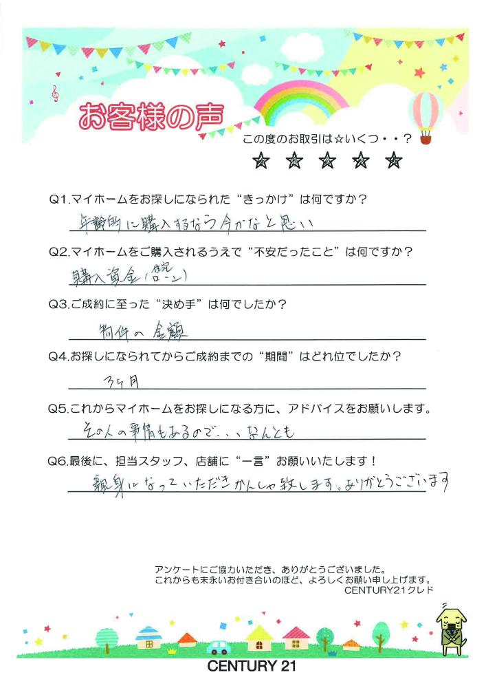 お客様にご満足いただける物件をご紹介できましたこと、スタッフ一同、心より嬉しく存じます。