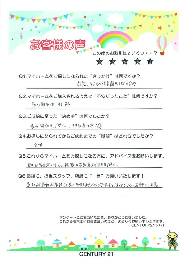 この度は、弊社にてご成約いただき、誠にありがとうございました。