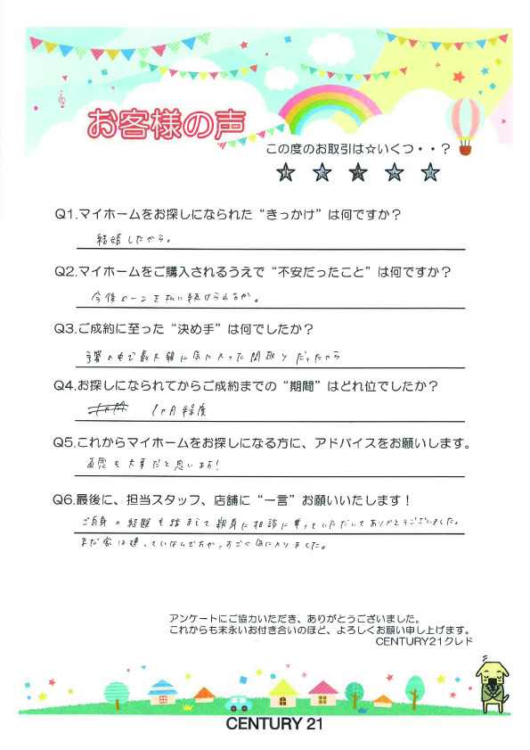 お客様の理想の物件探しのお手伝いができましたこと、大変嬉しく思っております。