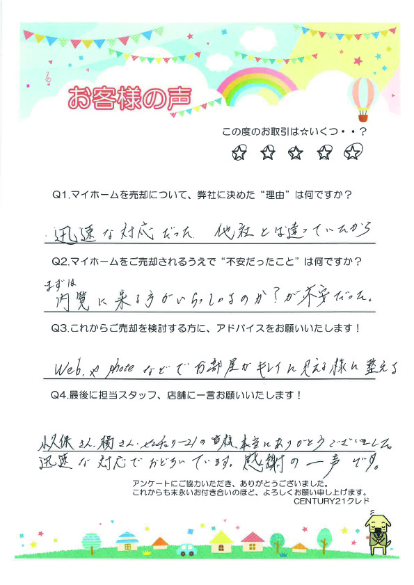 ご売却という大きなご決断の中で、ご不安な点もあったかと存じますが、少しでもお力になれておりましたら幸いです。