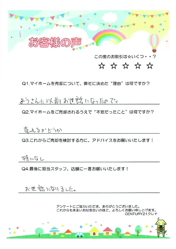 このたびは大切なお住まいのご売却をお任せいただき、誠にありがとうございました。